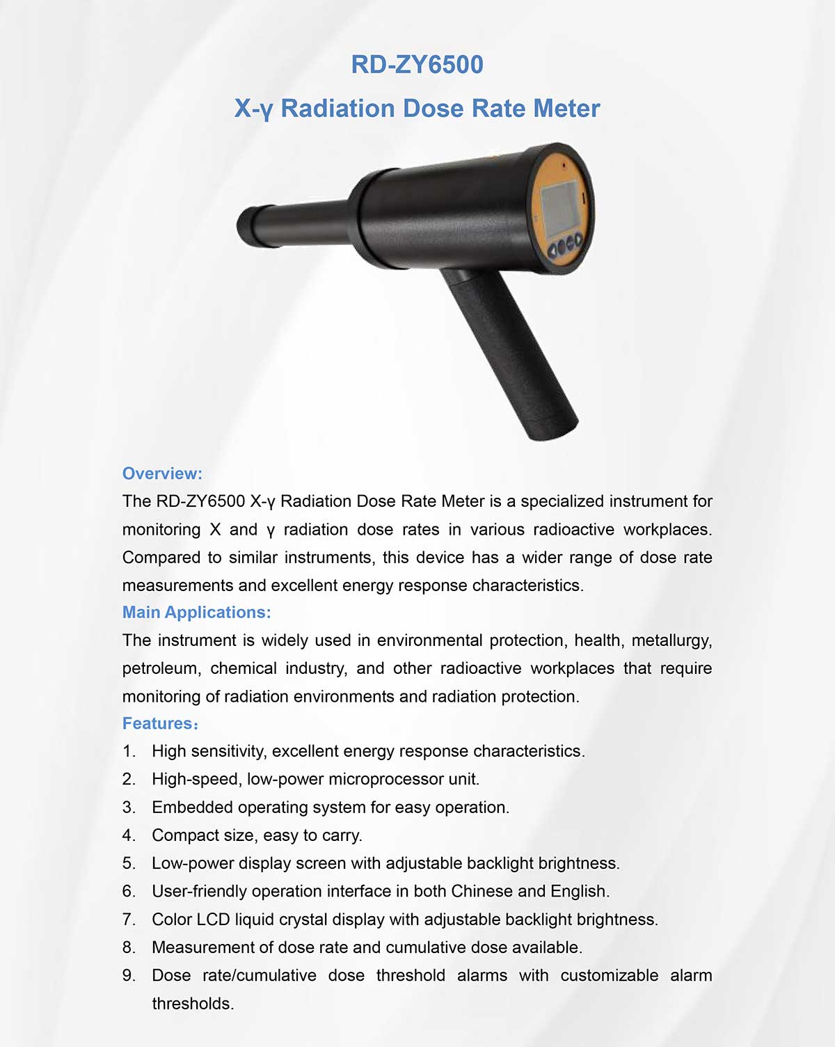 RD-ZY6500 X-γ Radiation Dose Rate Meter