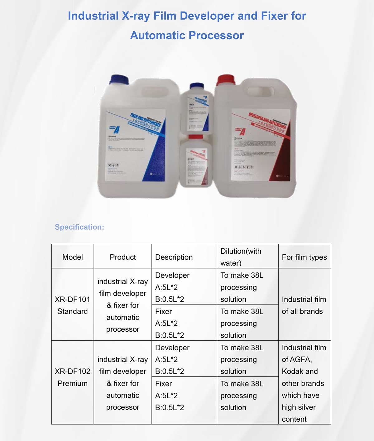 X-ray Film Developer and Fixer for automatic processor